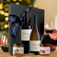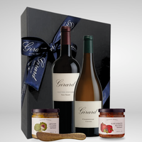 The perfect pairing for effortless wine country entertaining. This gift set features our Old Vine Zinfandel and Chardonnay, complemented by McEvoy Ranch Artichoke & Almond Tapenade and Olive Oil & Roasted Red Pepper Tapenade, plus a wooden spreading knife for easy serving. A deliciously thoughtful gift that brings the flavors of wine country to any table.