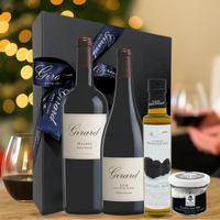 Indulge in the ultimate pairing of earth and elegance. This luxurious set features our GSM red wine blend and our Malbec, two richly layered reds that shine alongside truffle olive oil and black truffle salt. A decadent gift for the gourmand who loves bold flavors and unforgettable experiences.